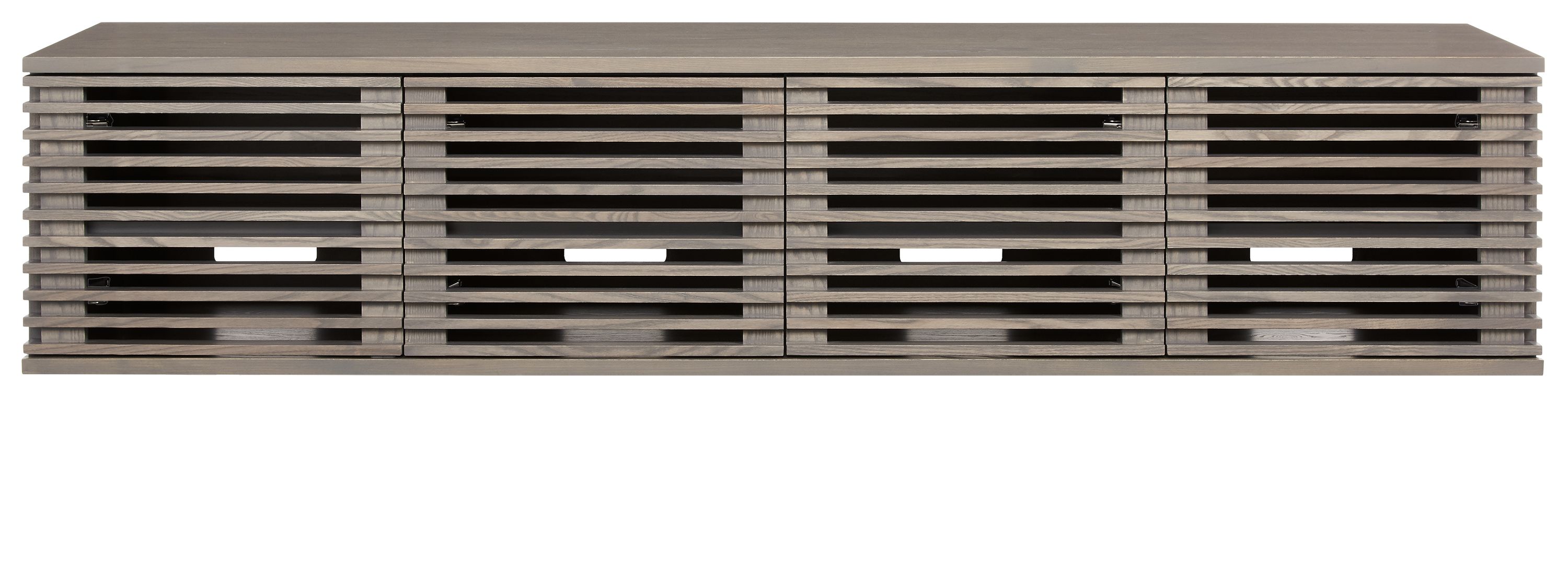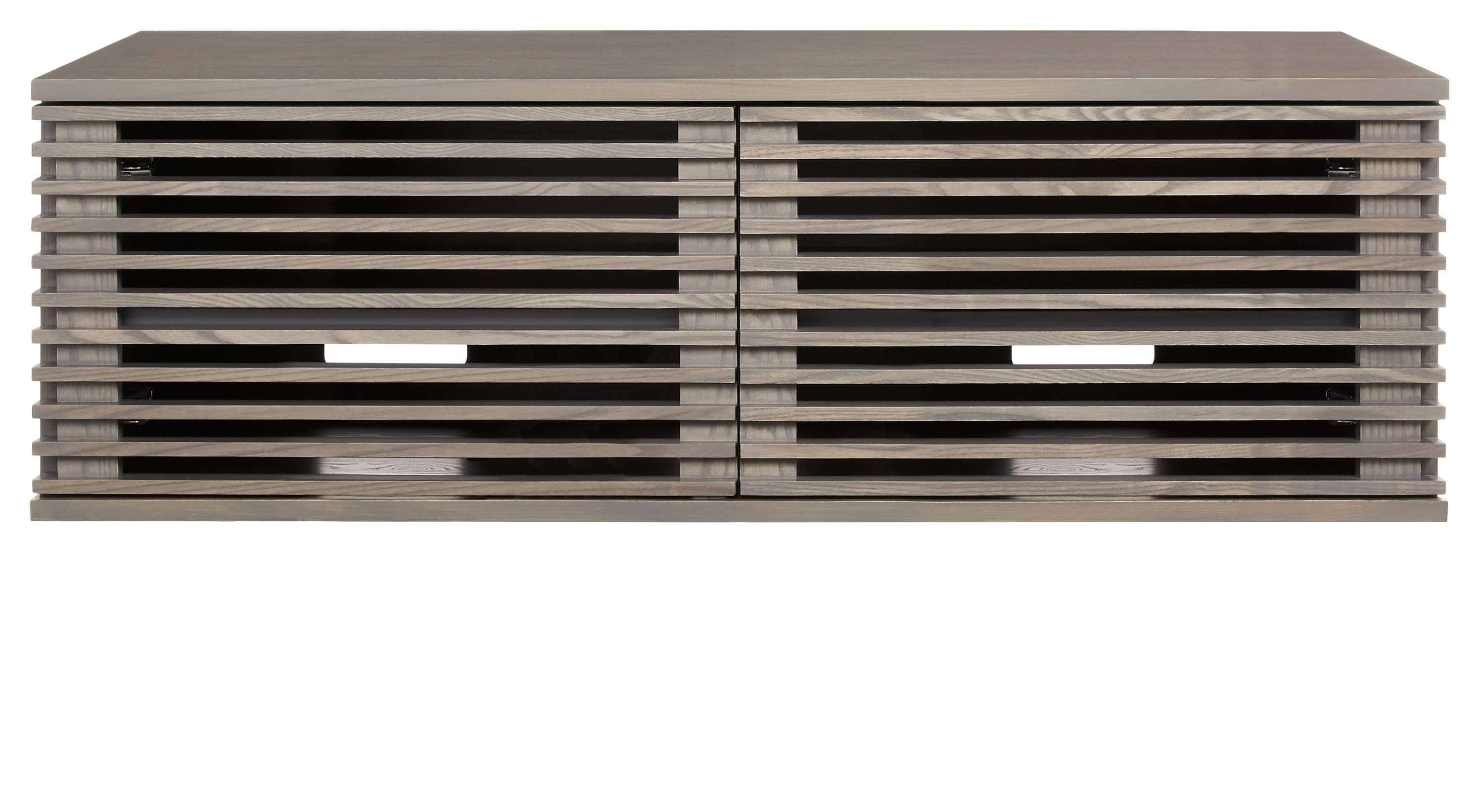 Visually hovering above the steel base, the Coles media cabinet is a distinctive piece. Constructed of solid wood and steel (with thoughtful cord openings), Coles has plenty of storage inside, making it as functional as it is beautiful. The slats in the front allow remotes to work through the doors and provide much-needed ventilation for devices.
