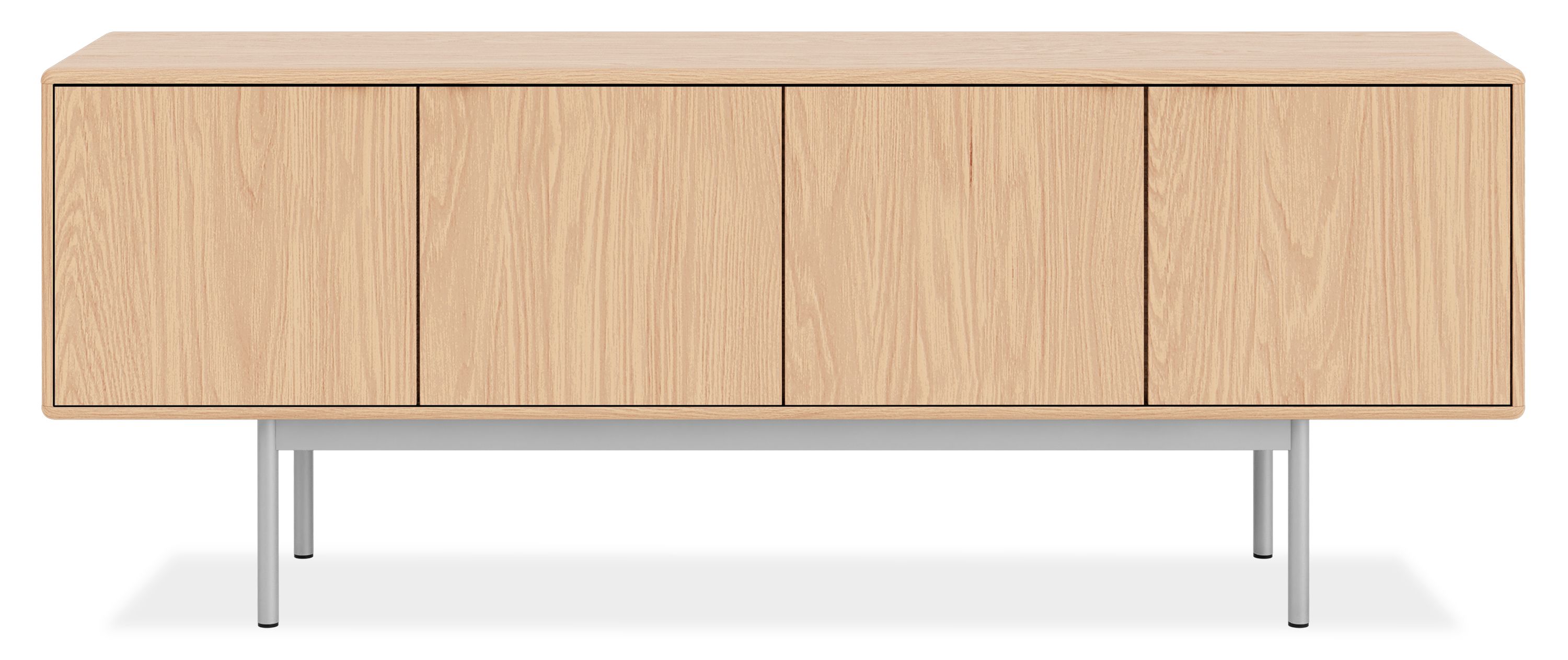 Our Hensley media cabinet brings a soft and modern silhouette to your home. Inspired by the timeless appeal of mid-century design and infused with modern details, Hensley features a stunning mix of materials that give it an updated look for today. You'll love the smooth feel of the domestically sourced solid wood, and appreciate the durability and beauty of the brushed stainless steel or powder-coated graphite base. Softly curved door pulls mimic the rounded edges of the media cabinet to round out this sophisticated storage option.