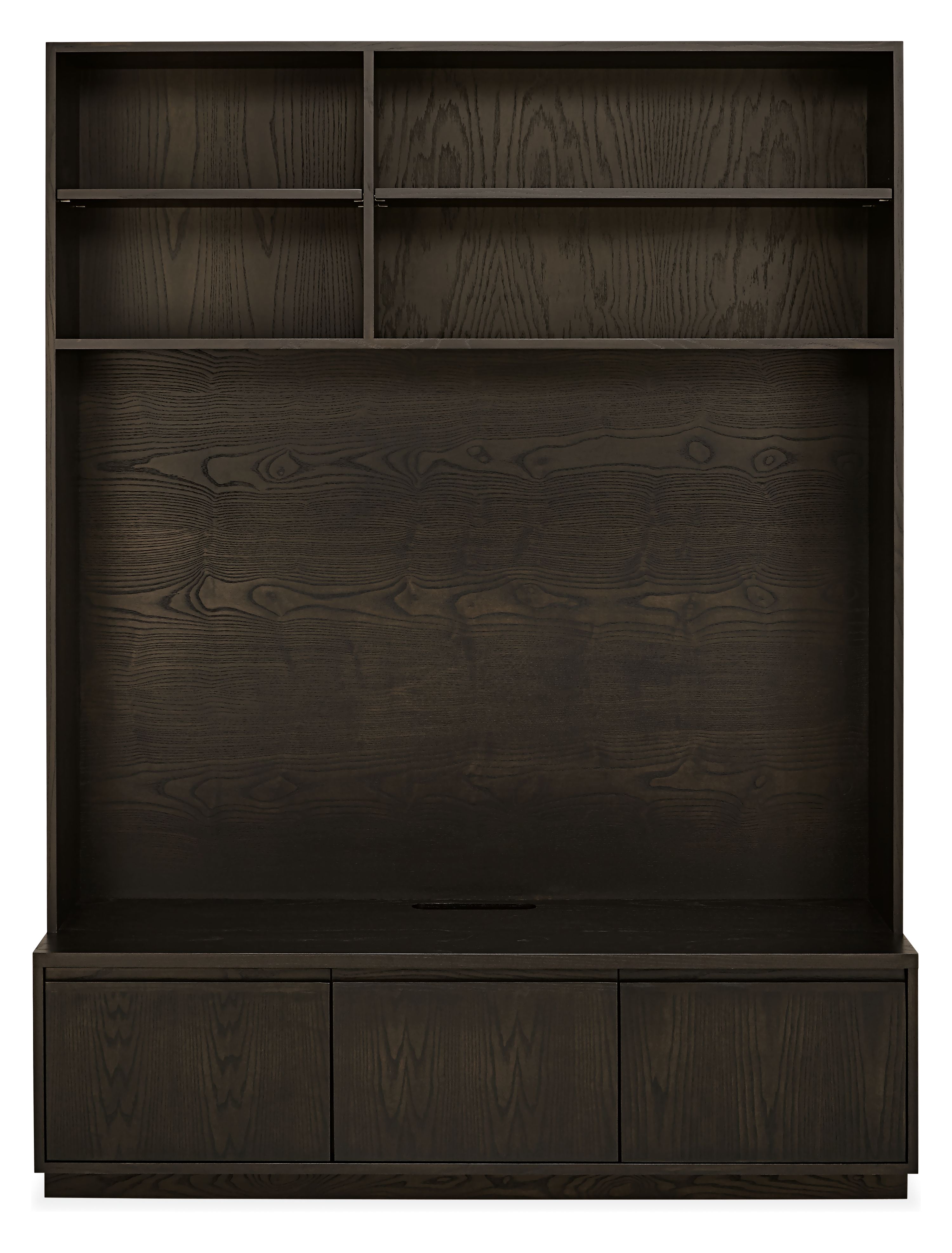 The thicker back panel on the 60w 18d 80h media bookcase allows you to easily add your own wall mount bracket. It features concealed cord management in the top of the cabinet to maintain a clean, modern look.
