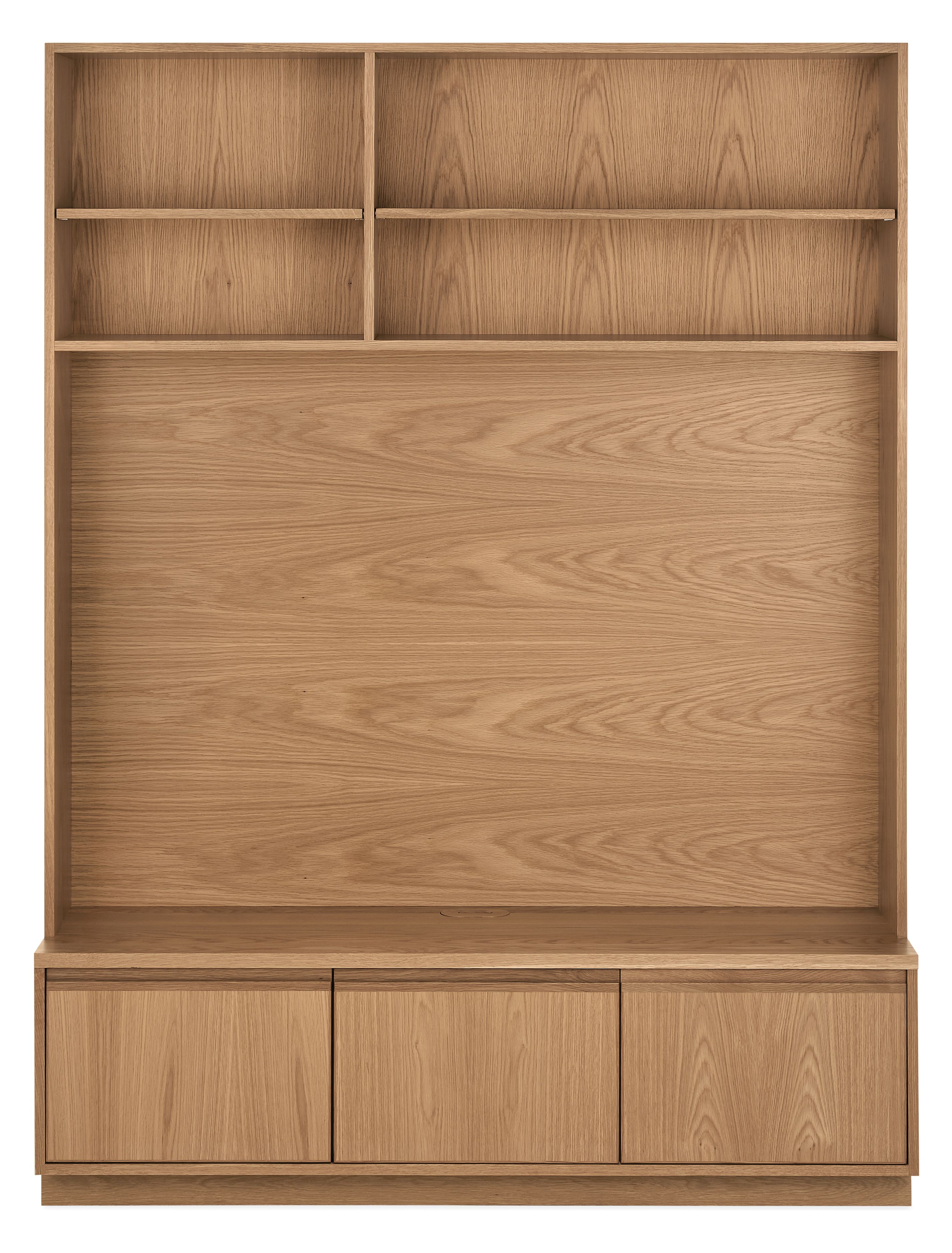 The thicker back panel on the 60w 18d 80h media bookcase allows you to easily add your own wall mount bracket. It features concealed cord management in the top of the cabinet to maintain a clean, modern look.