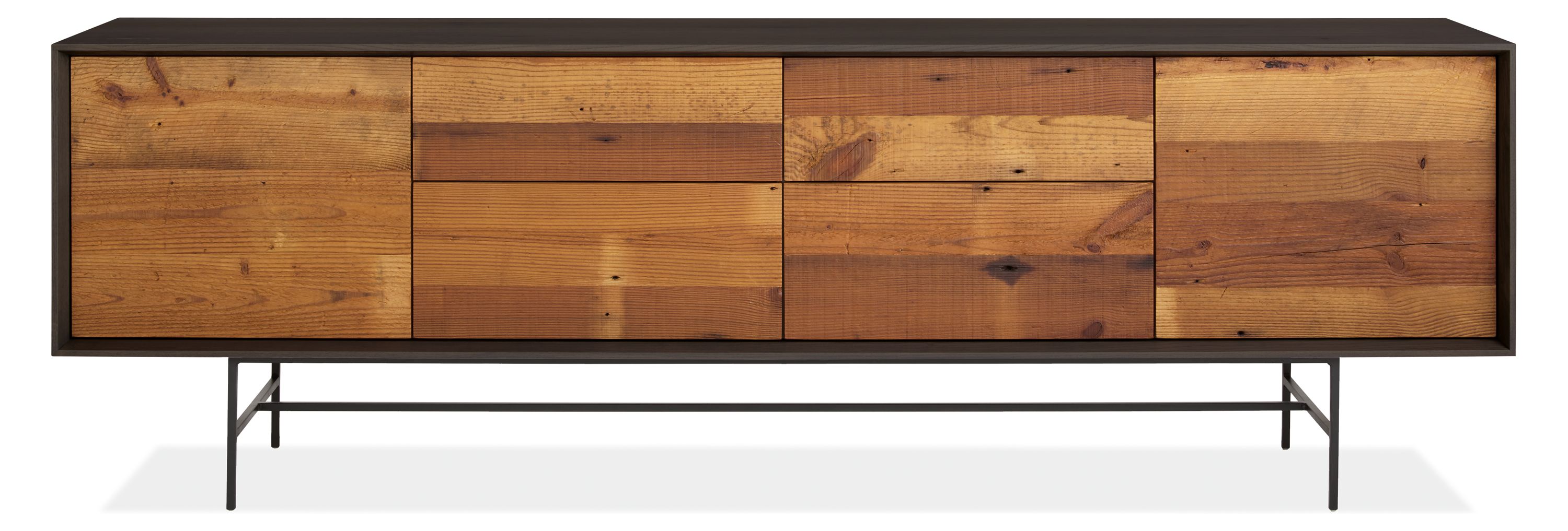 Born from our partnership with the USDA Forest Service and the city of Baltimore, the McKean media cabinet is a beautiful example of sustainability in action. We’ve reclaimed wood that would have otherwise been taken to a landfill to create truly unique pieces of sustainable furniture for your home. The pine for this cabinet is reclaimed from roof decking of row houses in Baltimore, with some of the wood panels dating back to the 1800s. The cabinet features push-to-open drawers and is slightly set back in a solid wood frame. Combined with a natural steel base for a sleek and modern look, McKean is one of a kind and brings a story to your home you’d be proud to share.