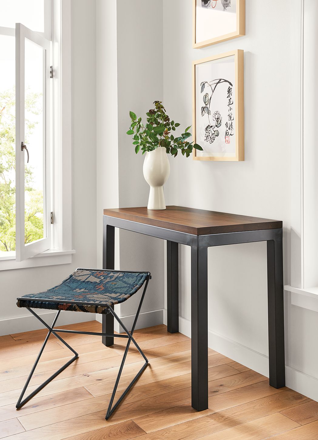 Our Parsons console table and our Tavi stool come together in this entryway for modern storage and beautiful seating.