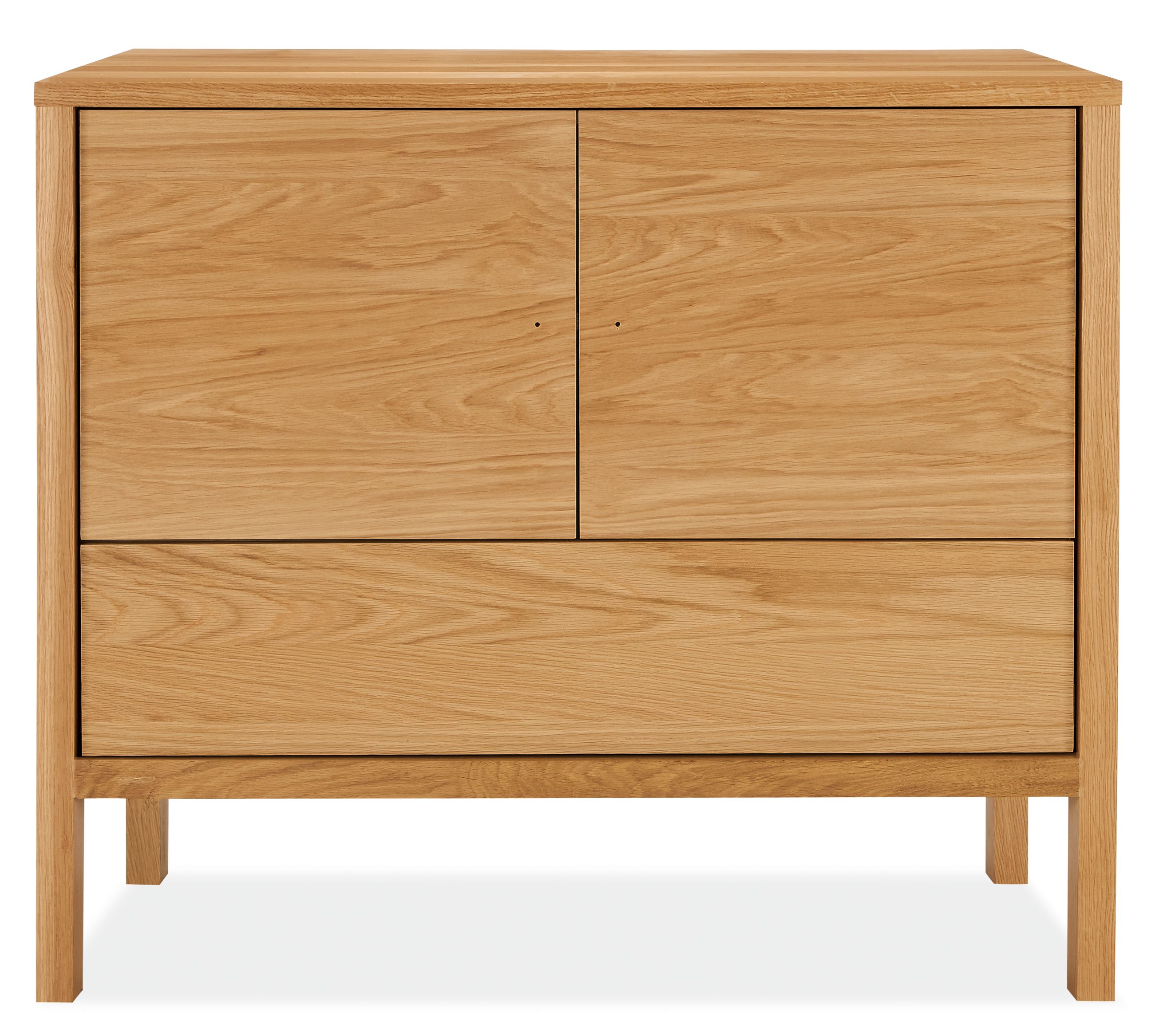 - Wood: white oakFinish: water-based acrylicFeatures: Solid wood and wood veneer, Slightly darkens over time, Water-based finish, Responsibly madeResponsibly made: Cleaner chemistry