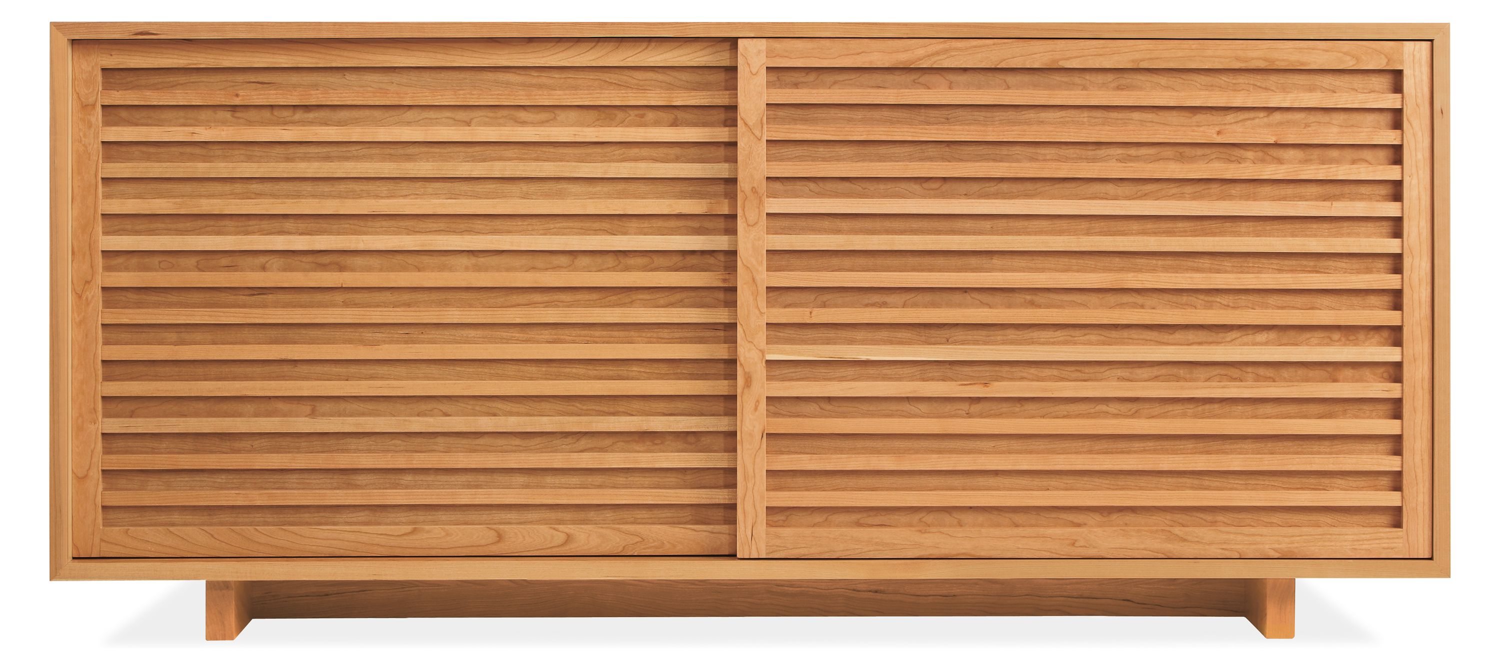 Vermont artisans handcraft our Moro storage cabinet, applying solid wood bands to sliding doors for a space-efficient design that has a subtly Japanese-influenced style.