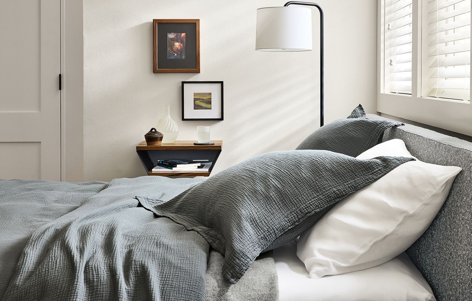 - If space is tight, use a floor lamp for bedside lighting.