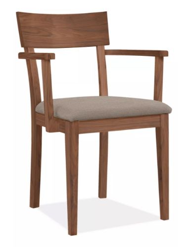 Wide chairs with arms typically provide the most comfort. In a small space, narrower or armless chairs help fit more people around the table.