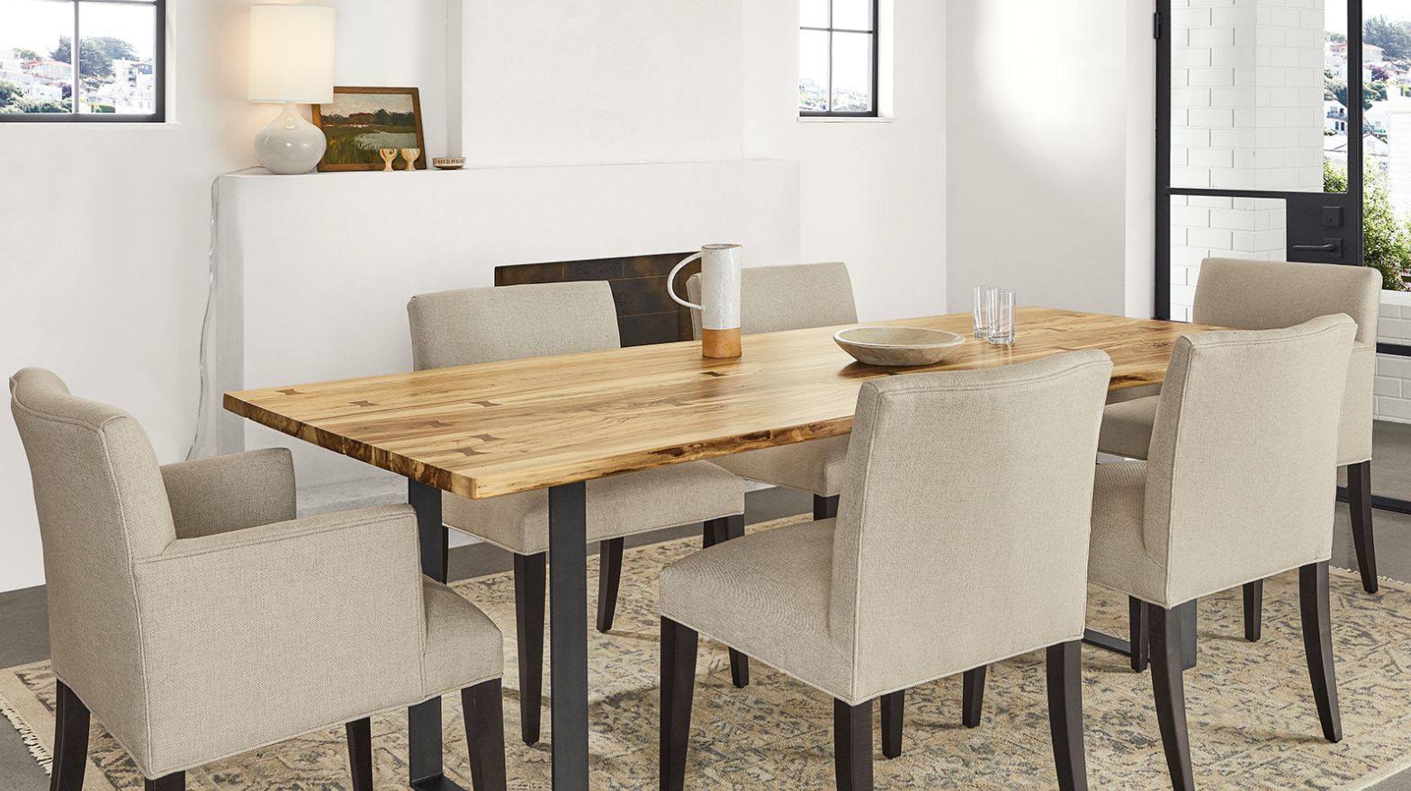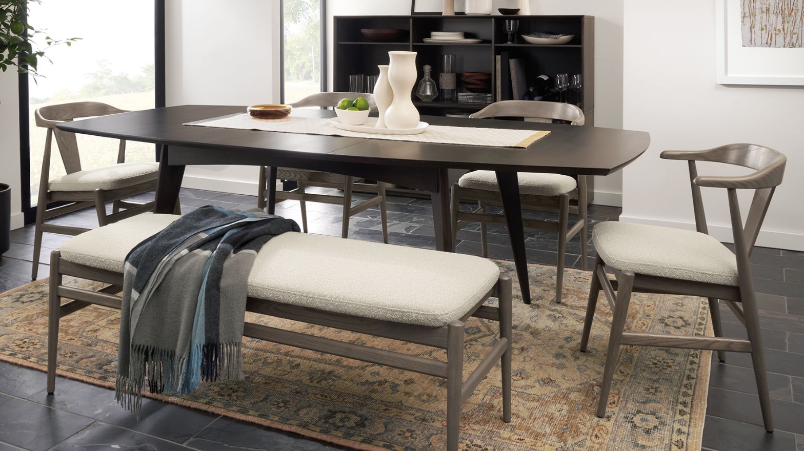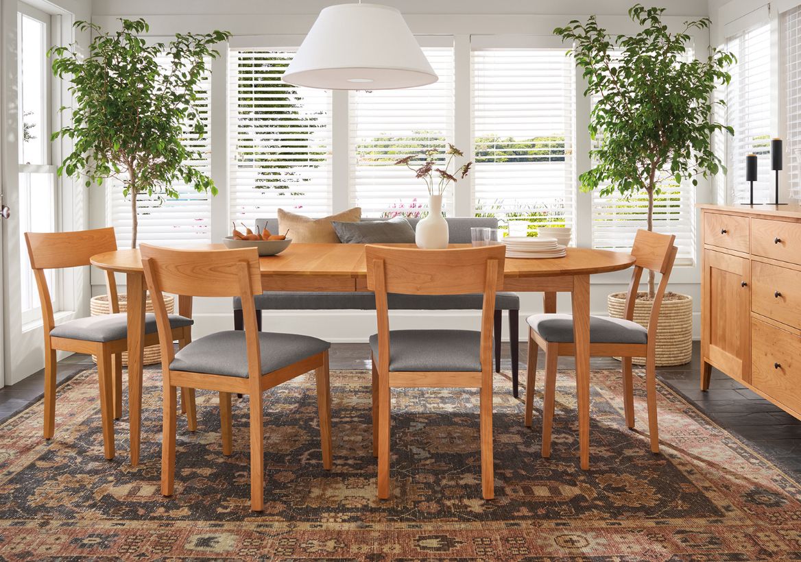 Enjoy maximum seating in a minimal space. Pro tip: A backless bench helps a small dining space look open and airy.