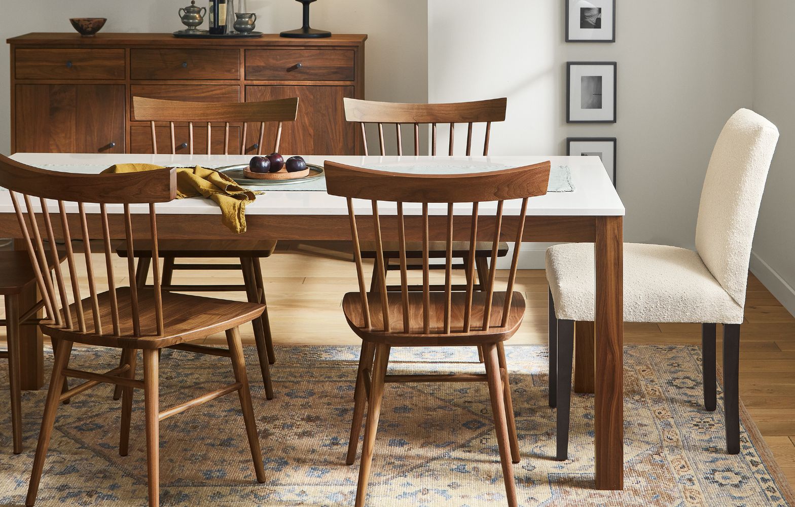 - Wood dining chairs and benches are a go-to for wipe-clean, no-fuss solutions, plus create a classic, elegant space for catching your breath.