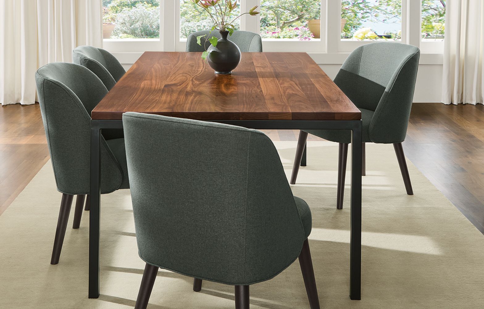 - Alternatively, go all-in on fully upholstered chairs in family-friendly fabrics with deeper cushions and a soft back.