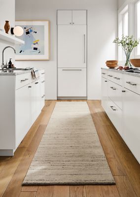 Consider a runner or small rug in a kitchen to add comfort and cushion to prep and cooking spaces.
