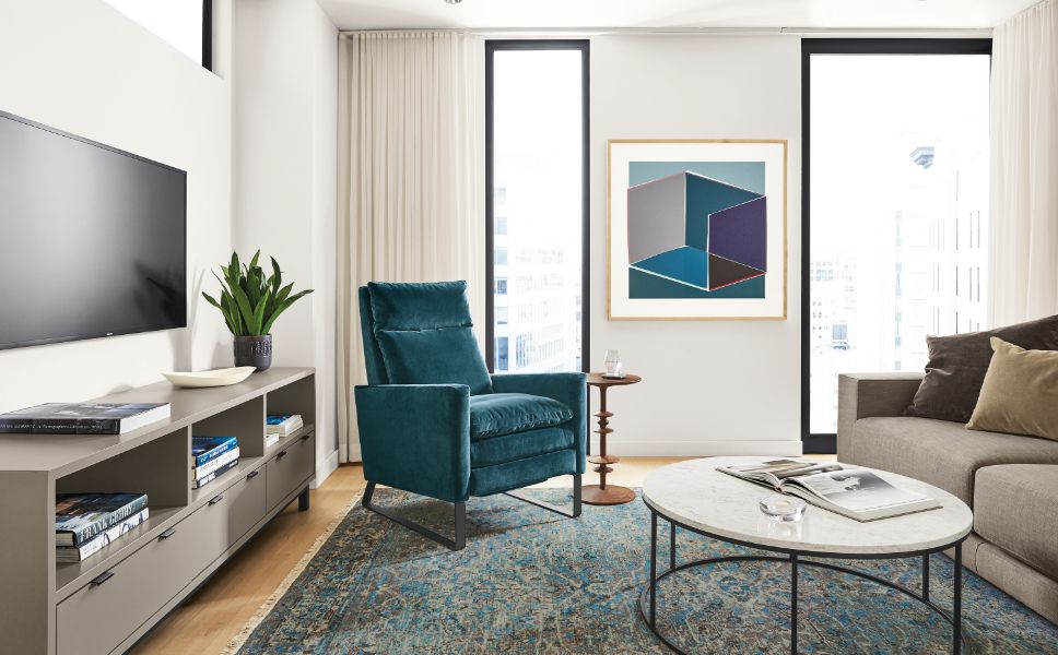 When you’re designing your space, a patterned rug can add dimension and richness to a room and can also inspire your upholstery color choices.