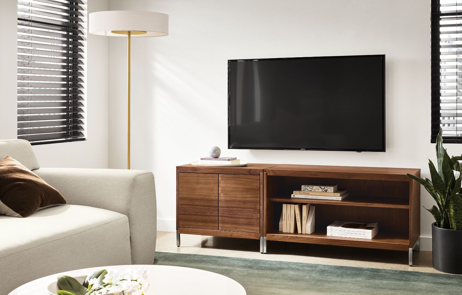 Explore easy ways to organize your living room with modern storage furniture.