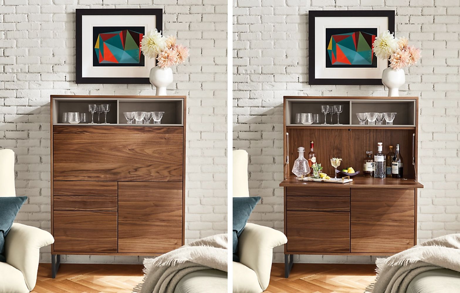 Keep your favorite beverages, glasses and accessories in one place with our ideas for modern bar storage.
