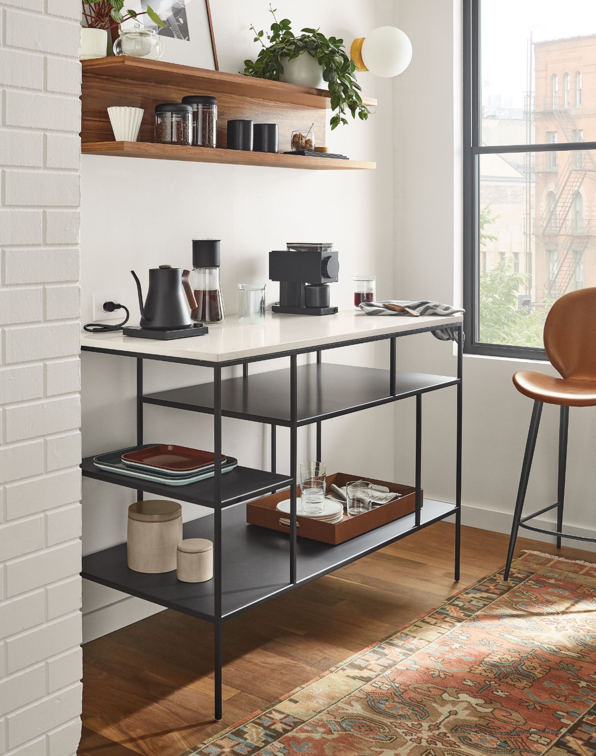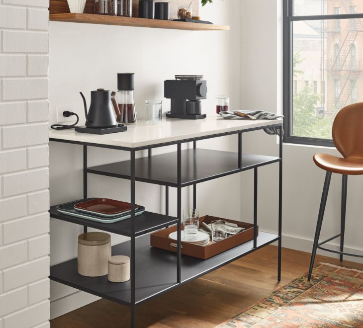 Wake up your morning routine with all your coffee supplies in one area. An airy design keeps everything easily accessible.