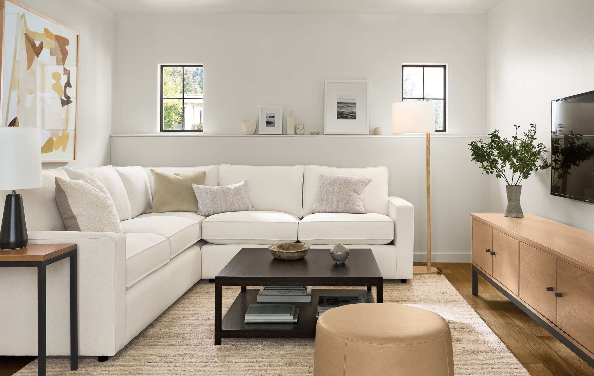 - An L-shaped sectional acts as a helpful room divider and can define your living space.