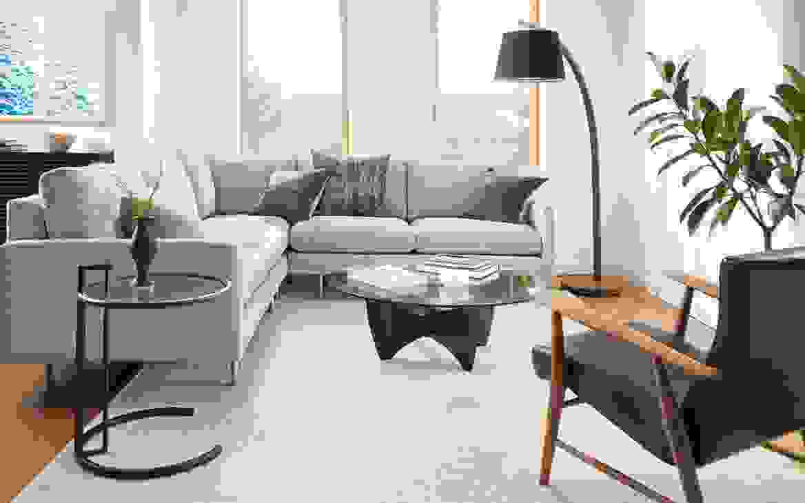 An angled wedge or chaise provides a lounge-worthy corner that's shallower than a traditional sectional, making it easier to fit into tricky spaces.