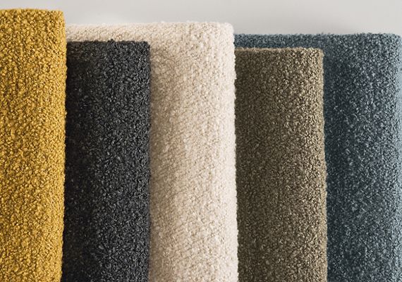 - Fabric Type: Bouclé is a textured fabric created by weaving together curly, knotted yarns. Bouclé fabrics are soft to the touch and have looped, nubby surfaces that resist wrinkling and camouflage signs of wear.