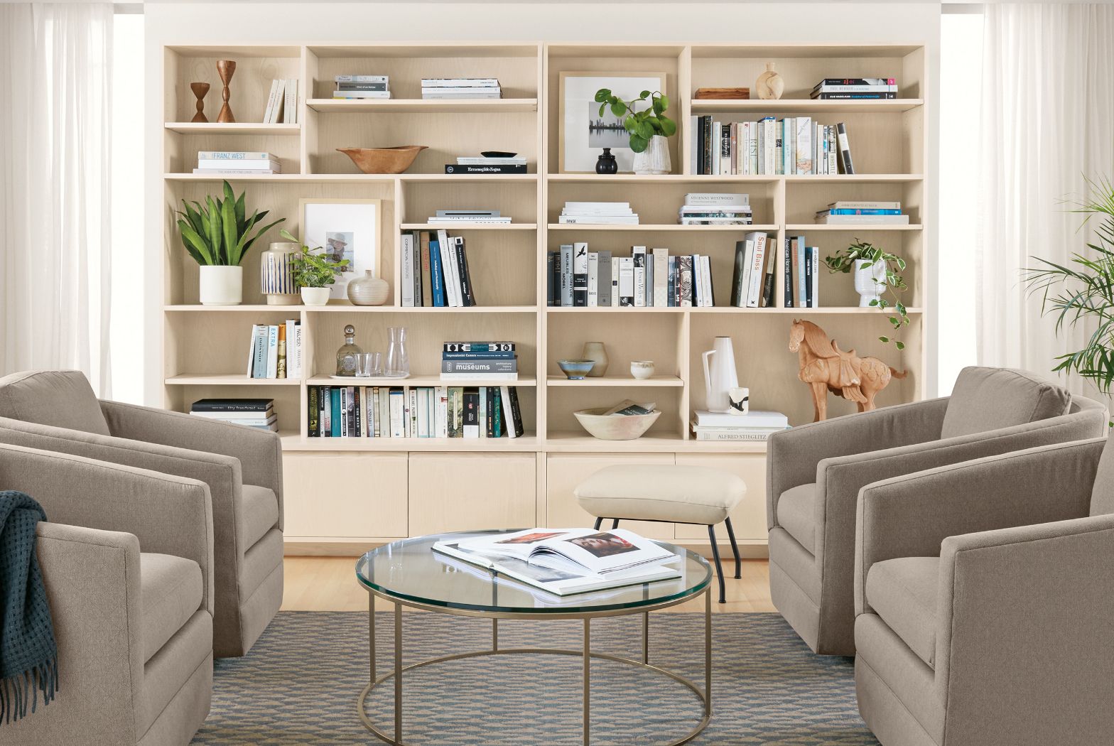 A bookcase is the perfect place to display favorite items and pieces you’ve collected throughout the years, plus book and photos you want close at hand. Explore our modern bookcases, offered in a range of stocked and customizable options and read our tips below to achieve an effortlessly styled bookcase.